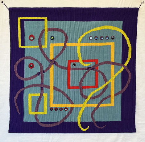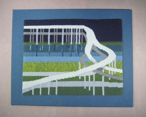 I have been weaving tapestry for almost 50 years, and I am still learning. I wove traditional Aubusson style for years: cotton warp, wool weft. Recently the work has veered toward eccentric weft, varied fibers, hand-spun, variegated dyeing, new images drawn on the computer.